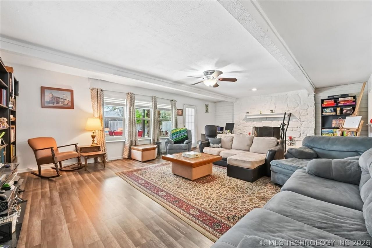 Welcome to a well-maintained and inviting 3-bedroom, 2-bath home with pool and features designed for both comfort and style. Step into a spacious living room complete with a cozy fireplace, custom built-in bookshelves, and plenty of room to relax or entertain. The functional layout flows seamlessly into the rest of the home, offering comfortable living spaces and generously sized bedrooms. Enjoy outdoor living at its best with a beautiful gunite pool and a wrap-around deck-perfect for entertaining, lounging, or soaking up Oklahoma summers. Additional highlights include a 2-car garage, a newer roof, and HVAC system (both updated in 2020), giving peace of mind for years to come. This home blends charm, functionality, and value in a desirable location-don't miss your opportunity to make it yours!