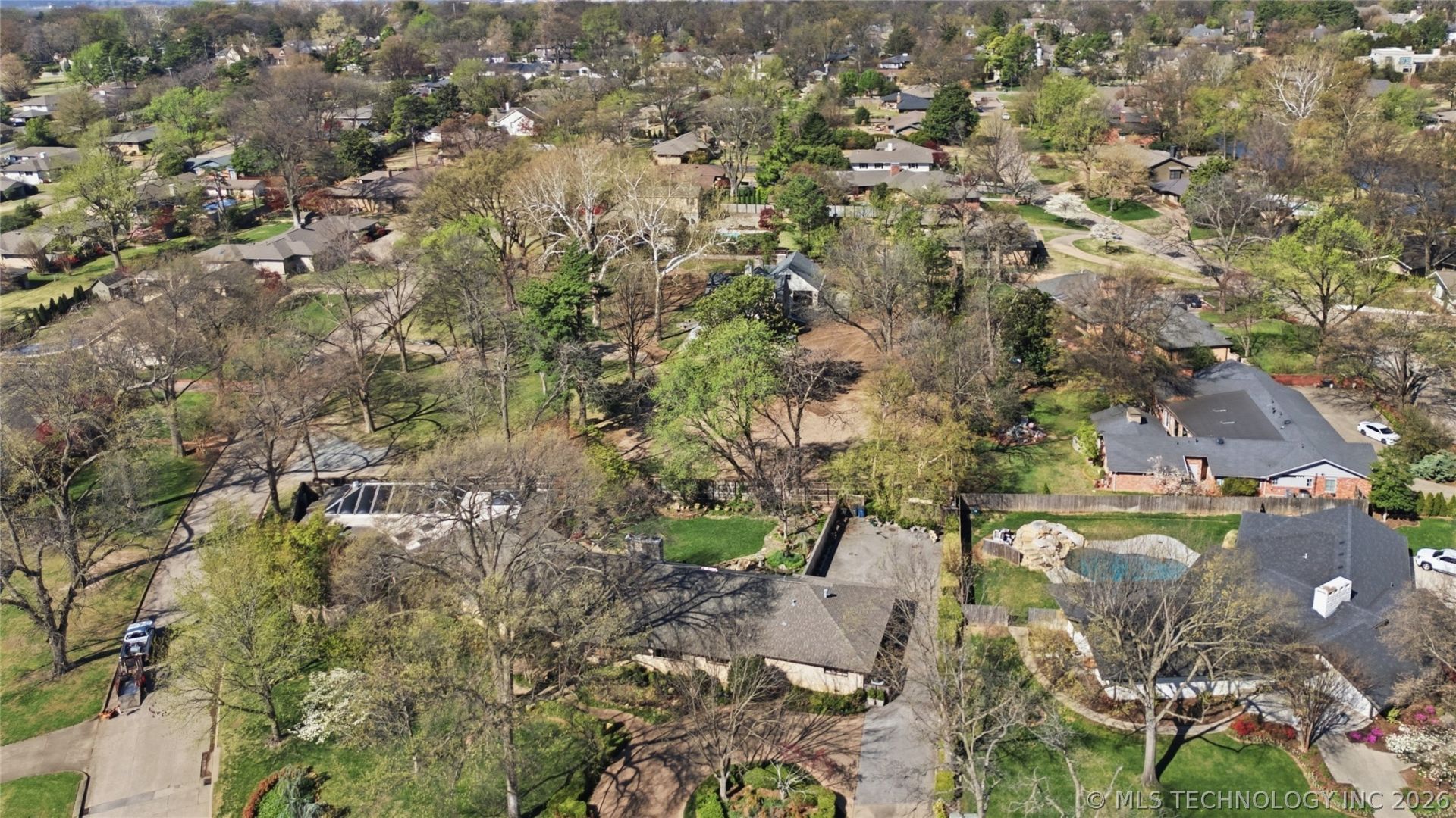 Discover timeless elegance in this exceptional one-story luxury ranch-style home nestled in the highly sought-after Charlane Estates of midtown Tulsa's Ranch Acres neighborhood. Offered for the first time in 45 years, this sprawling property sits on a generous half-acre corner lot, graced with mature landscaping and majestic trees that provide both beauty and privacy. Showcasing classic mid-century charm with a striking full fossil stone exterior and gleaming hardwood floors throughout. Updates include a new roof and a whole home generator. The home features a spacious formal living room, a dedicated dining room, and a cozy study complete with built-in bookcases. The designer kitchen is a chef's dream, boasting high quality custom cabinetry, upgraded appliances, a large center island, and an inviting eat-in breakfast area. Relax or entertain in the family room with a wet bar and fireplace, or retreat to the primary suite featuring two walk-in closets, a dressing area, and a spa-like bath. Two generously sized secondary bedrooms with continued hardwood floors, share a convenient pull-man bath. Enjoy a large versatile bonus game or activity room. Step inside the climate-controlled indoor swimming pool area with a spa, full bath, and ample space perfect for entertaining and family fun all year round. Multiple exterior patios and a fully fenced backyard provide ideal outdoor living spaces. The home features a spacious rear entry two car garage with storage. This prime midtown location places you close to Tulsa's finest restaurants, shopping, and top-rated schools including Edison, Monte Cassino, Cascia Hall, Bishop Kelley, and Marquette. Don't miss this rare opportunity to own a beautifully maintained mid-century gem in one of Tulsa's most coveted neighborhoods - a perfect blend of charm, comfort, luxury and convenience.