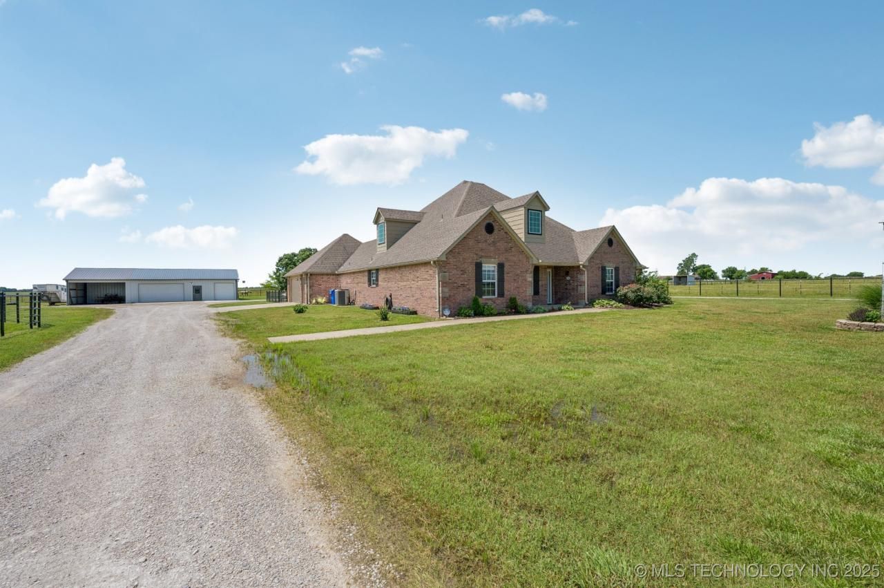 Edit mortgage details for a more accurate paymentOologah horse property on 20 acres w/black top road frontage. Perfect set up for an in-law plan or multi-generation w/Separate full 1/1 Guest House apartment recently built! Beautiful 4 stall 48x36 horse barn; tack & feed rooms, office w/wood stove. Expanded 40X40 insulated shop w/heat, concrete floor, ceiling raised to incorporate a lift and outside storage/parking. Carport for implement storage, New 30X50 Hay barn w/lean-to. Spacious & open, custom 4bedroom, 3 full bath home featuring New Carpet in all bedrooms & closets plus new LVP in the living room. Pellet Stove fireplace, Formal Dining room or office are, large breakfast nook and eat in bar, Island Kitchen w/Granite & Stainless appliances. All on 1 level! Safe room in the oversized 2car garage does not prevent any full size vehicle parking. Fenced backyard with large covered patio and pergola. Acreage is fully fenced/cross fenced w/paddocks & multiple water sources. Fishing pond at the South end of the property and includes 2 Grand Gated entries at the North. Surrounded by black pipe fencing this property shines! Noted Class II & III soils for increased grazing/carrying capacity. Could be a fantastic horse training facility OR Air B&B with a Guest house w/horse facilities. So many options! Just minutes from Local Feed store, gas station/restaurant and Dollar General. @3.5 miles North of Oologah-Talala Schools. Less than 10miles to Oologah Lake Redbud Marina.